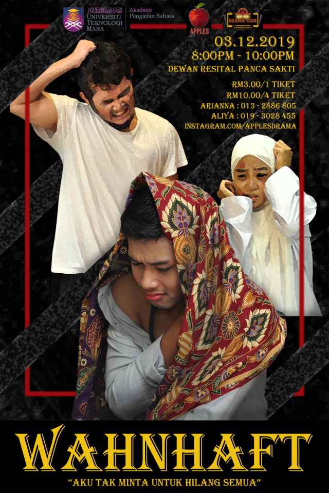 Wahnhaft was a Malay-language theatre drama conducted by UiTM's APPLES Drama Club. The primary target market was on-campus students of UiTM, while a grassroots approach was taken to drum up interest in segments beyond just UiTM students.