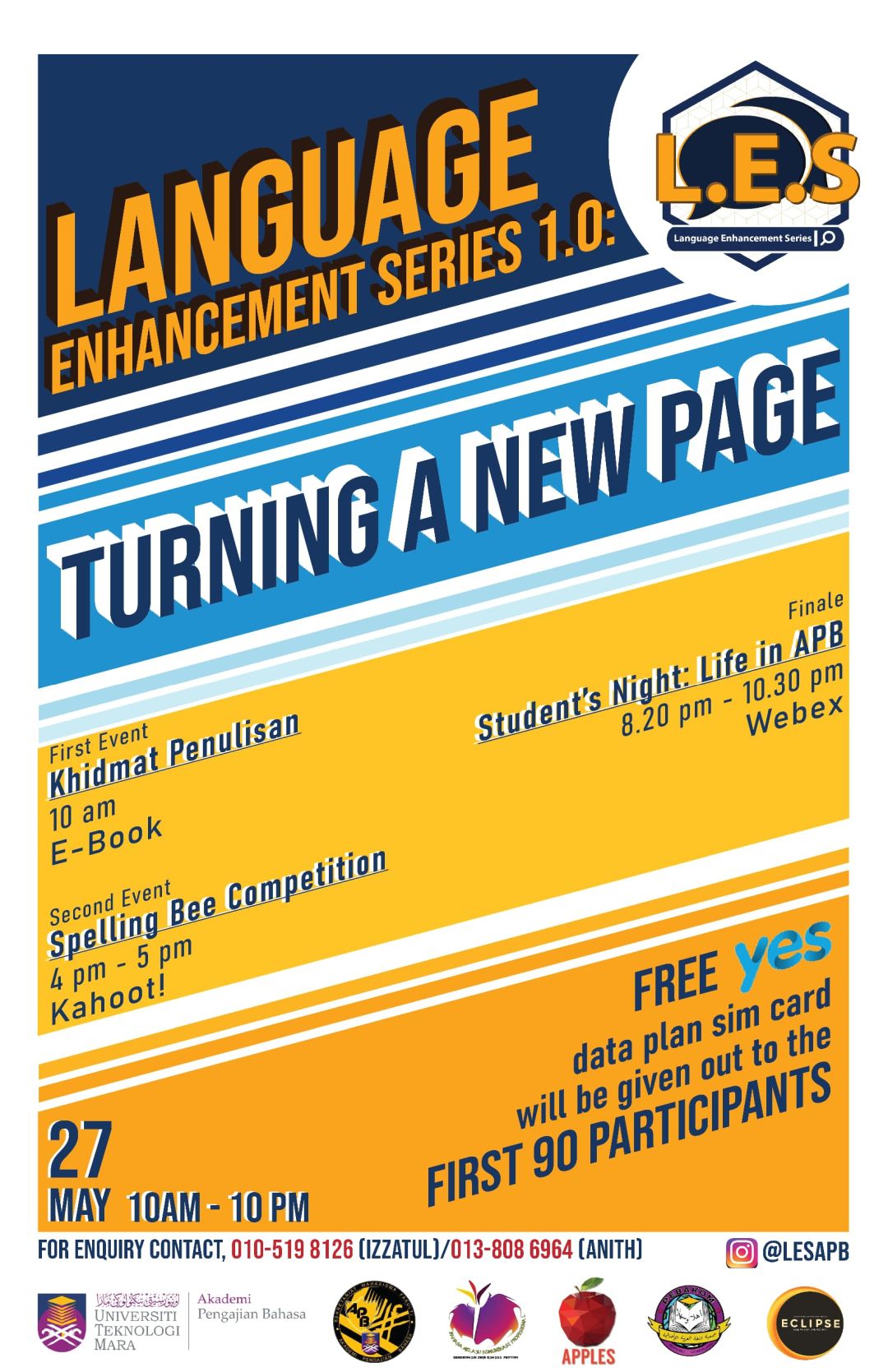 The first of a biannual event series held by UiTM's APB Faculty with the goal of enhancing the language-proficiency of secondary school students nationwide. The 3-day event was held online and offered participants multiple modules, courses, competitions, and workshops centred around three languages: English, Malay, & Arabic.