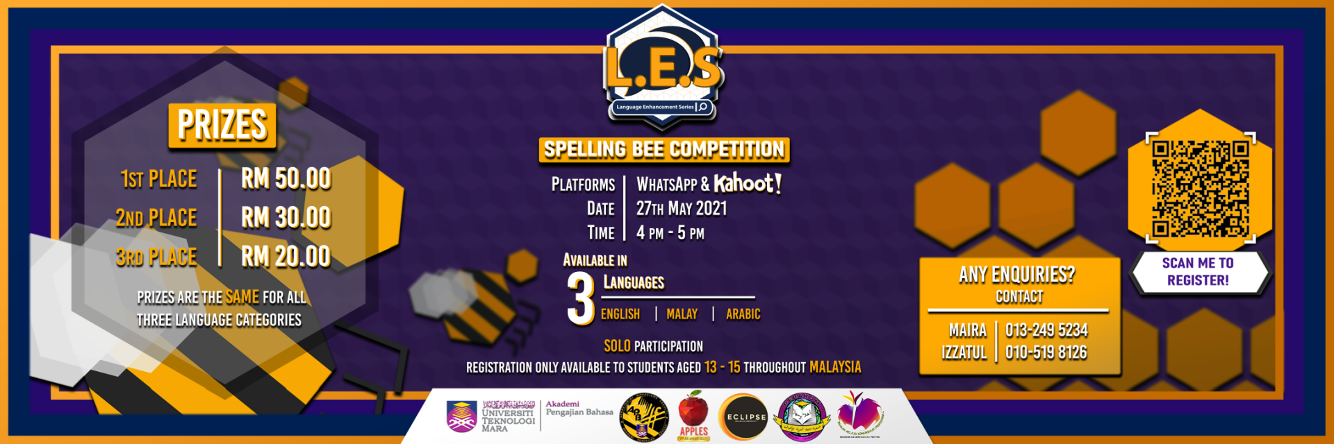 - Attracted over 200 participants from numerous secondary schools throughout Malaysia (workshop, forum, & spelling bee).